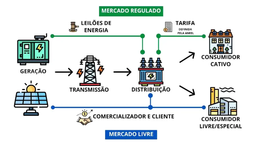 O Mercado Livre de Energia (MLE) é um ambiente onde empresas podem negociar diretamente a compra de energia elétrica com geradores ou comercializadores, escolhendo fornecedores, prazos e preços, diferentemente do mercado cativo.